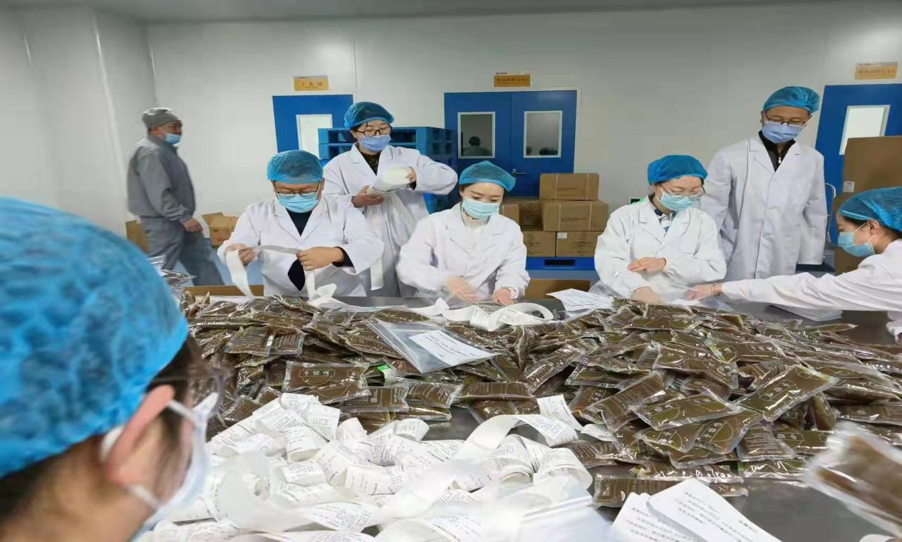 11日下午,来自第五党支部、第六党支部、第七党支部、第九党支部和新永利官网机关党支部、物业公司党支部的志愿者和车间员工再接再厉,一鼓作气又完成了211件汤剂的包装任务。全天共完成包装入库汤剂506件,保证了疫情防治药品按时发往兰州新新区各疫情防控点。